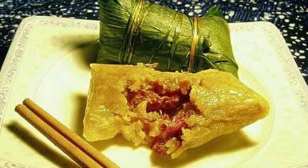 徽州裹粽:徽州春節(jié)也有包粽子的習(xí)俗,被稱為徽州裹粽?;罩莸聂兆哟蠖鄶?shù)是枕頭形,長而肥碩。箬葉洗凈,在糯米里加入適量的醬油、鹽、味精攪拌均勻;把糯米和腌好的肉用箬葉包成枕頭形狀,上鍋蒸兩個小時即可。
